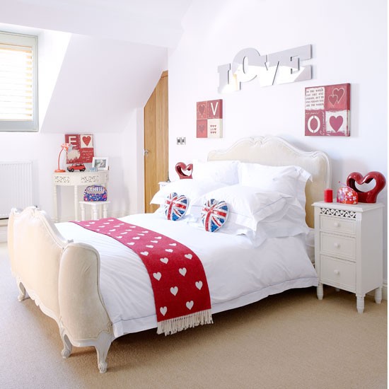 Bedroom Decorating Ideas Warm up a spacious bedroom that's open to the rafters with a wood burning stove then add an upholstered bed with pale linen upholstery and create a separate seating area with a wing chair and large upholstered sofa table.
